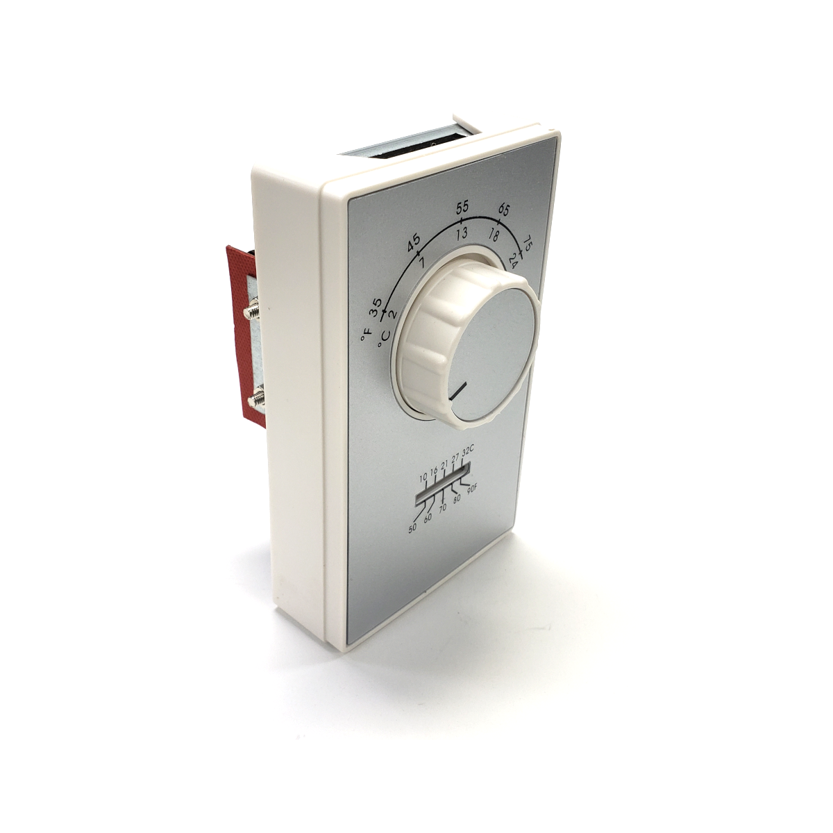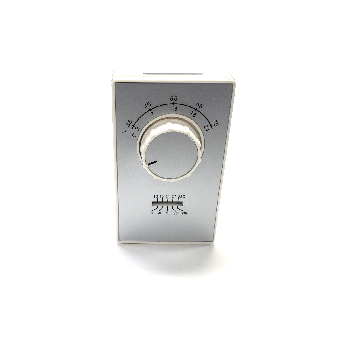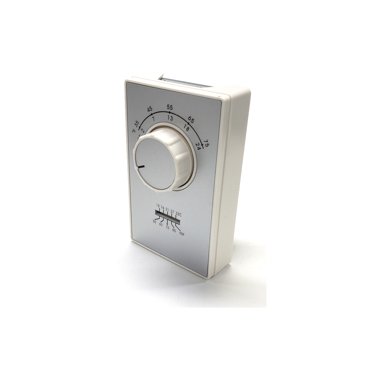 Two Stage thermostat. 35°–75°F range. Voltage: 24, 120 VAC