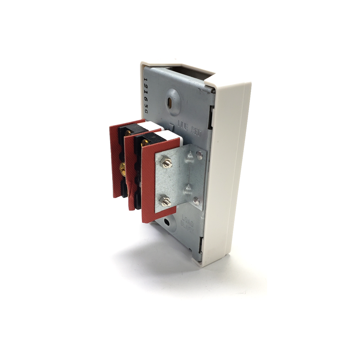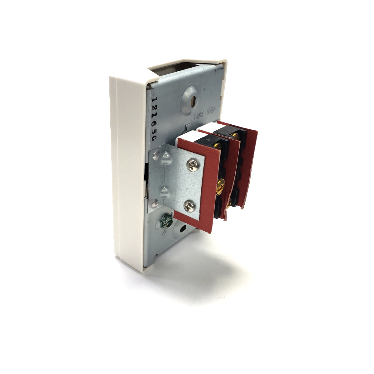 Two Stage thermostat. Double throw, 35°–75°F range. White plastic cover. May be used to switch either 24 V, 120 V. Non-adjustable, preset 2 degree high/low fire differential. UL Listed and CSA certified.