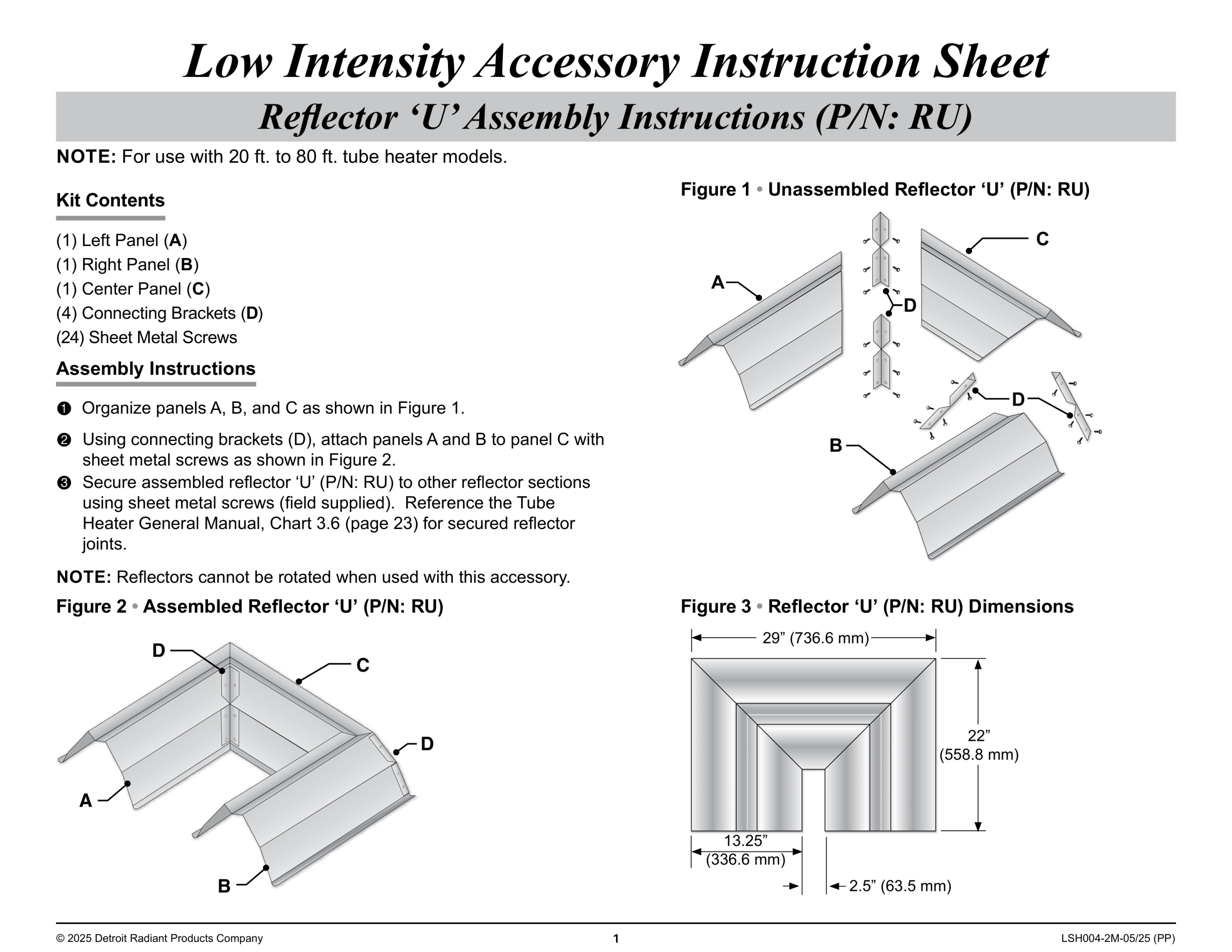 Reflector and āUā bend package – (1) TF1B and (1) RU.