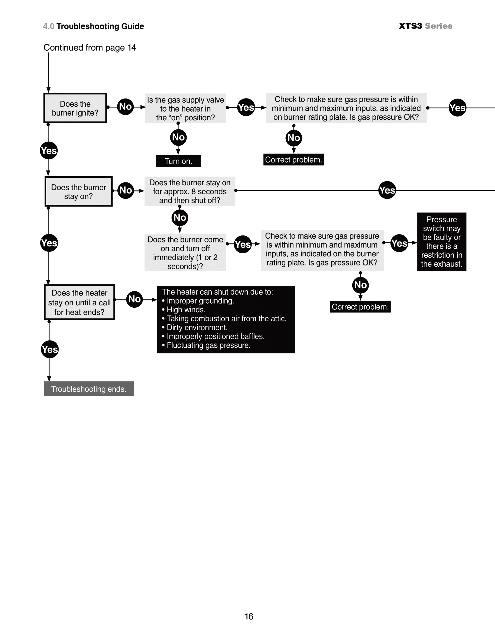 •Test and confirm that inlet pressures are correct. Refer to the heater rating plate for gas type and the
